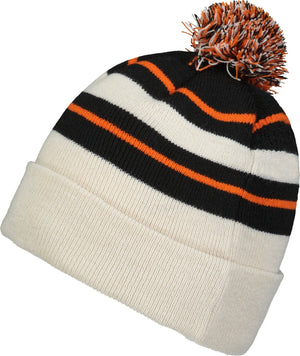 Pacific Headwear 641K Knit Fold Over Pom-Pom Beanie - Oat Black Orange