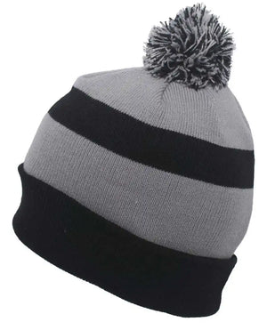 Pacific Headwear 641K Pom-Pom Cuff Beanie - Black Silver Black