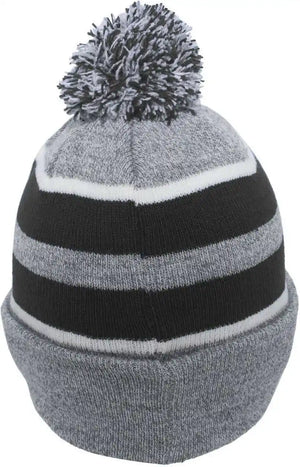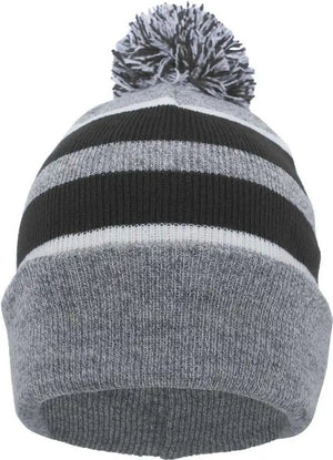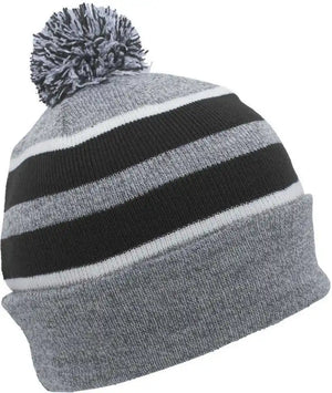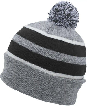 Pacific Headwear 641K Pom-Pom Cuff Beanie - Heather Gray Black White