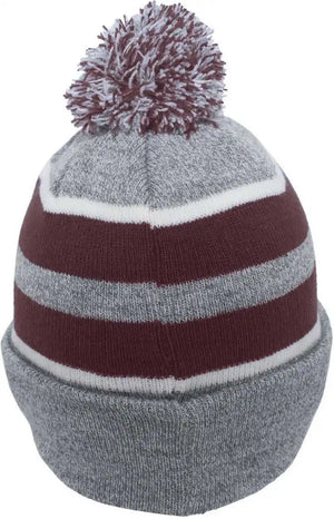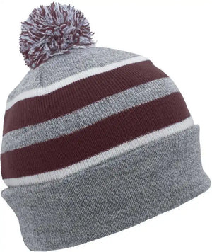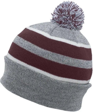Pacific Headwear 641K Pom-Pom Cuff Beanie - Heather Gray Maroon White