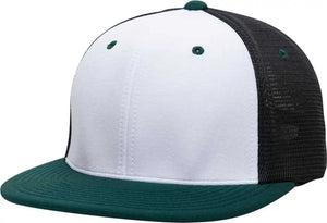 Pacific Headwear ES341 Premium M2 Performance Trucker Flexfit Cap - White Black Dark Green