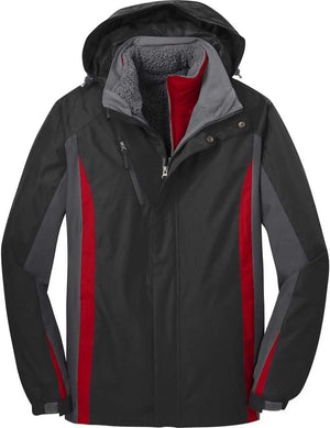 Port Authority J321 Colorblock 3-in-1 Jacket - Black Magnet Signal Red