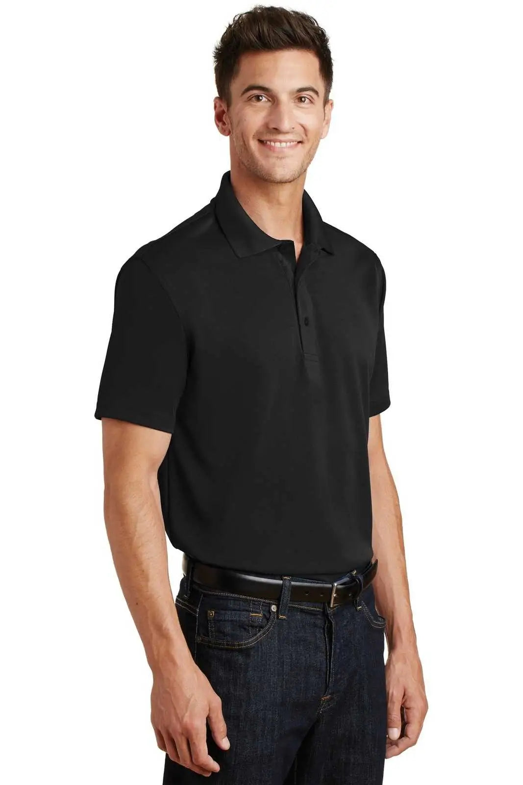 Port Authority K497 Poly-Charcoal Blend Pique Polo - Black
