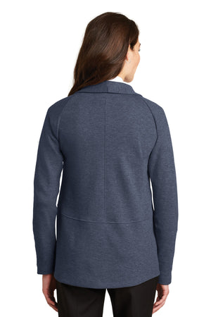 Port Authority L807 Women's Interlock Cardigan - Estate Blue Heather Charcoal Heather