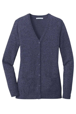 Port Authority LSW415 Ladies Marled Cardigan Sweater - Navy Marl