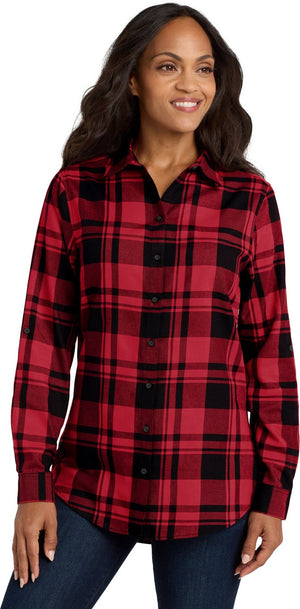 Port Authority LW668 Women's Plaid Flannel Tunic - Engine Red Black