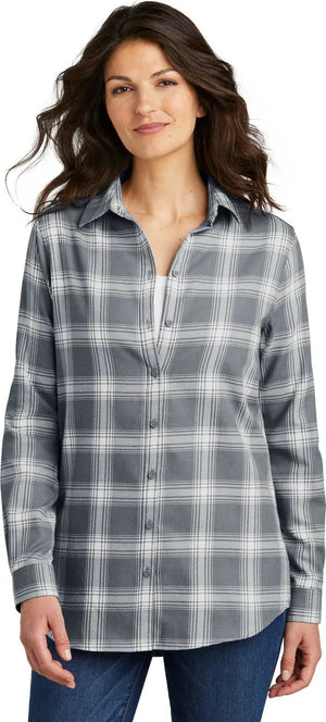 Port Authority LW668 Women's Plaid Flannel Tunic - Gray Cream Open Plaid