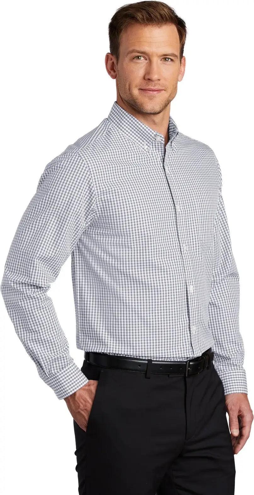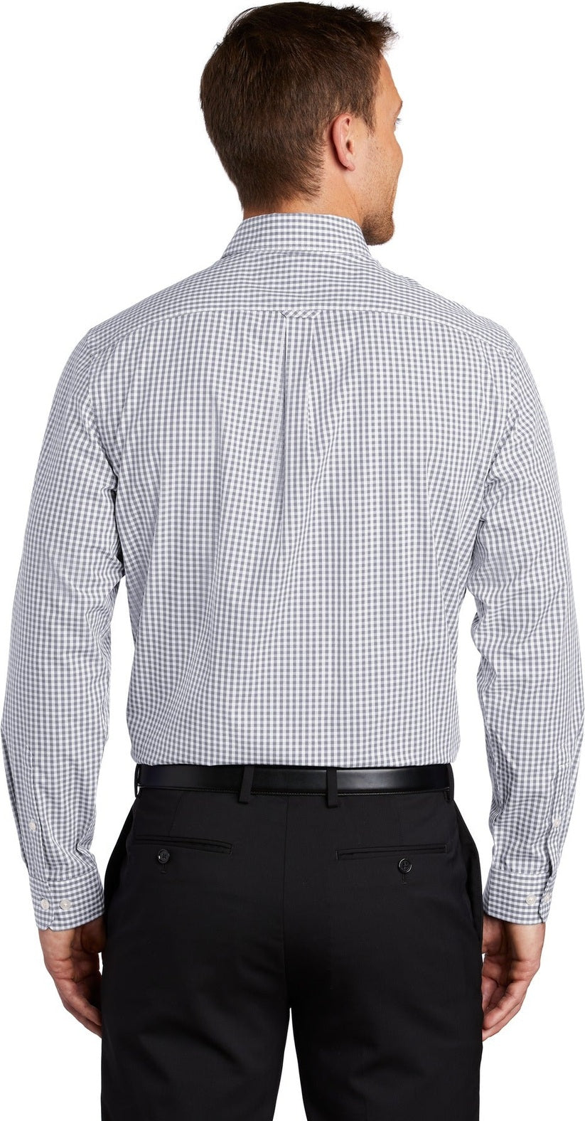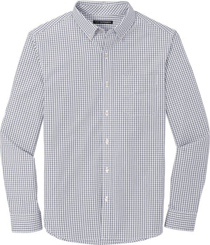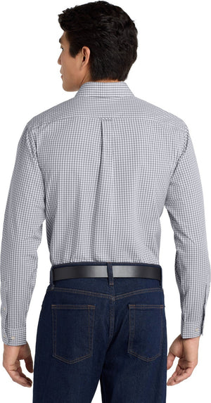 Port Authority W644 Broadcloth Gingham Easy Care Shirt - Gusty Gray White