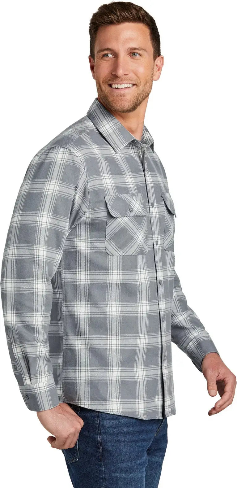Port Authority W668 Plaid Flannel Shirt - Gray Cream Open Plaid