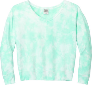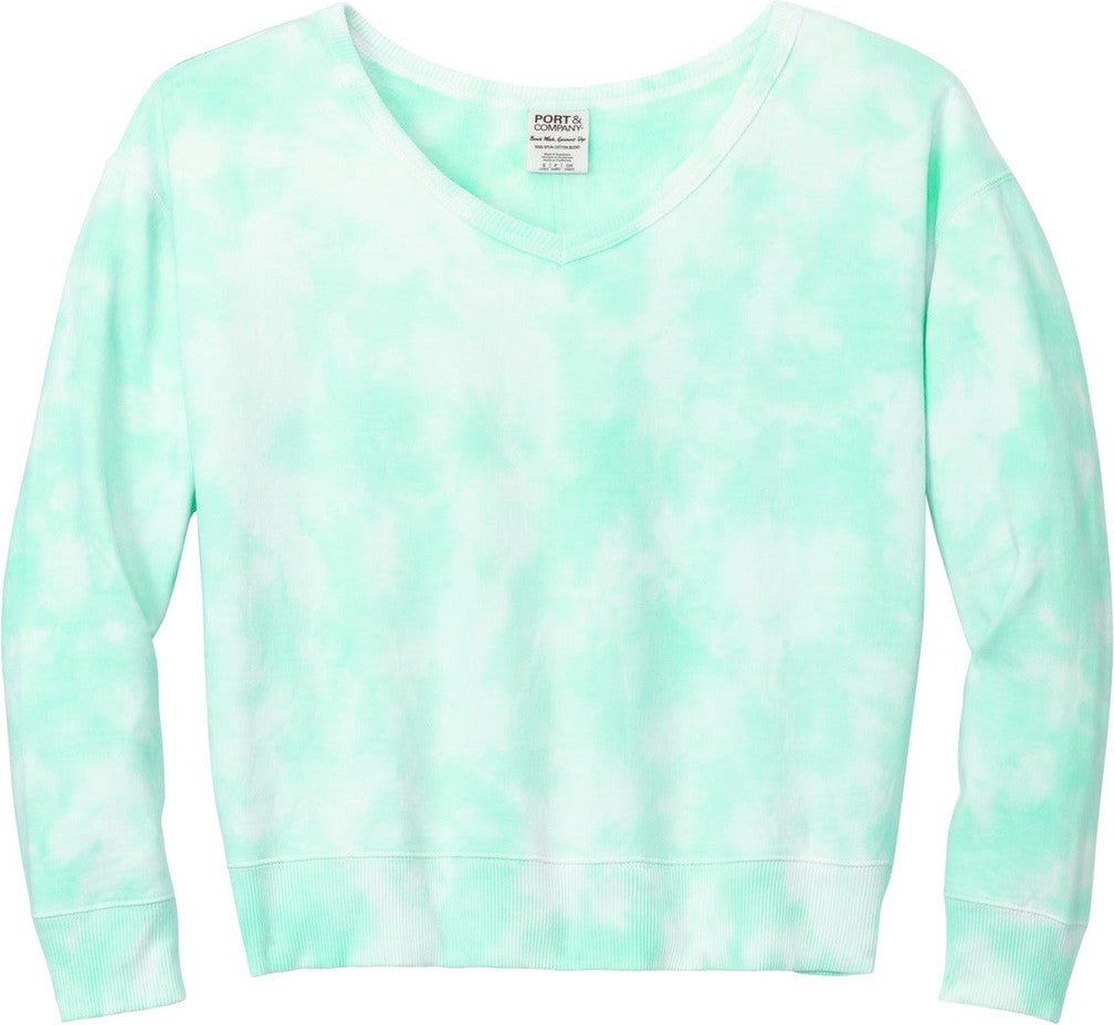 Port & Company LPC140V Port & Co Women's Beach Wash Cloud Tie-Dye V-Neck Sweatshirt - Cool Mint