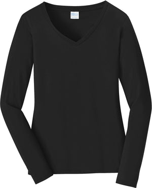 Port & Company LPC450VLS Port & Co Women's Long Sleeve Fan Favorite V-Neck Tee - Jet Black
