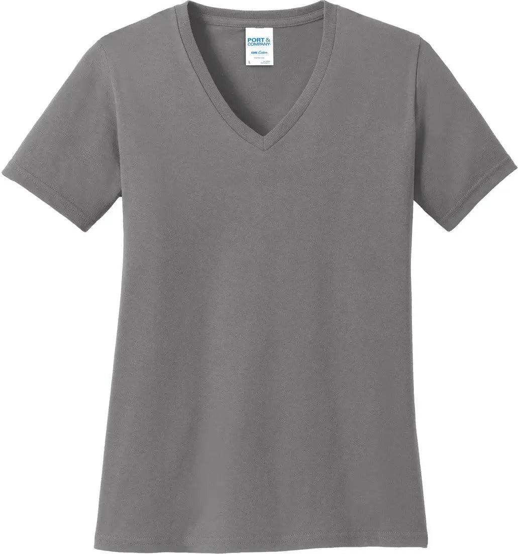 Port & Company LPC54V Port & Co Women's Core Cotton V-Neck Tee - Medium Gray