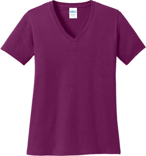 Port & Company LPC54V Port & Co Women's Core Cotton V-Neck Tee - Raspberry