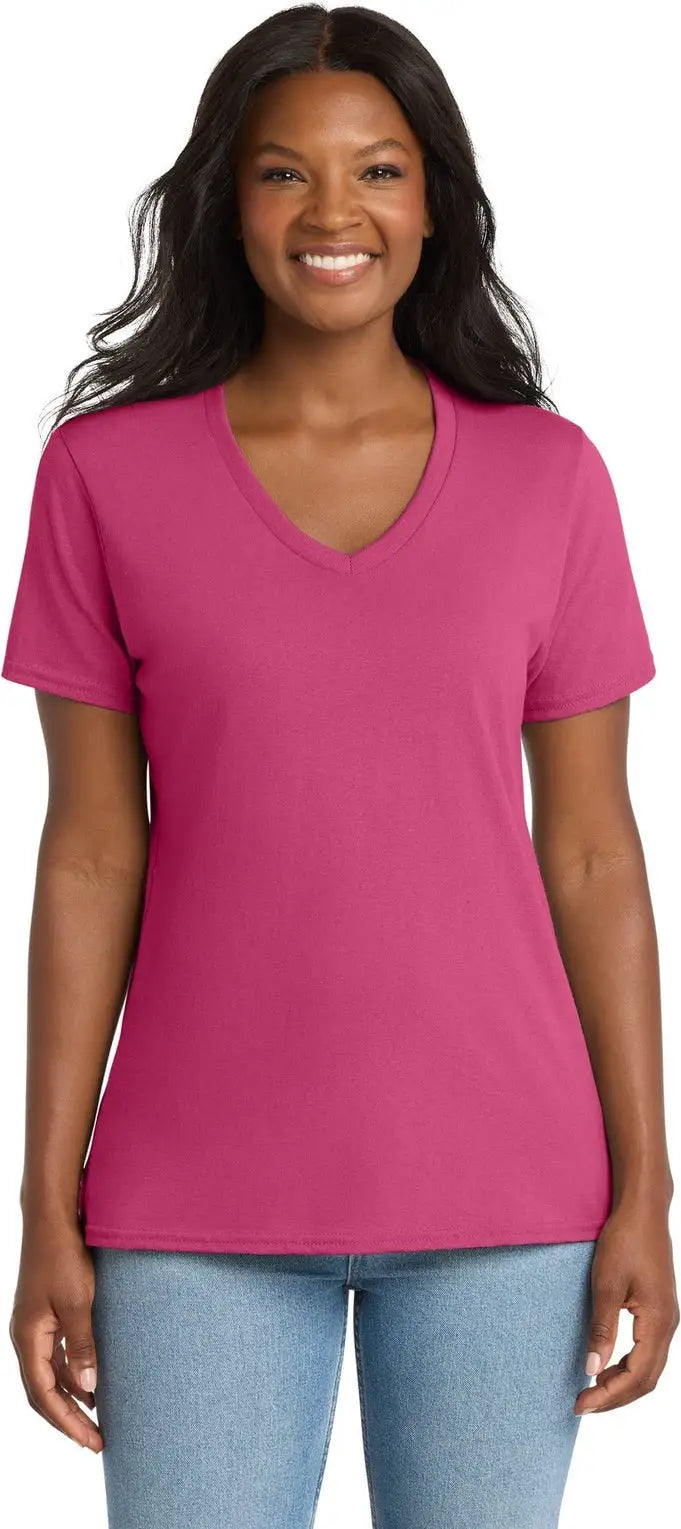 Port & Company LPC54V Port & Co Women's Core Cotton V-Neck Tee - Sangria