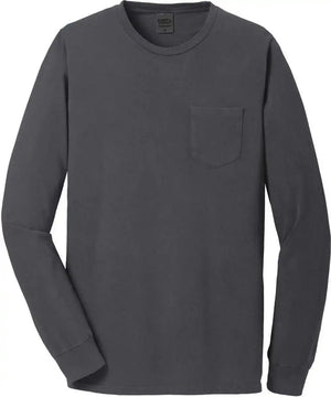 Port & Company PC099LSP Beach Wash Garment-Dyed Long Sleeve Pocket Tee - Coal