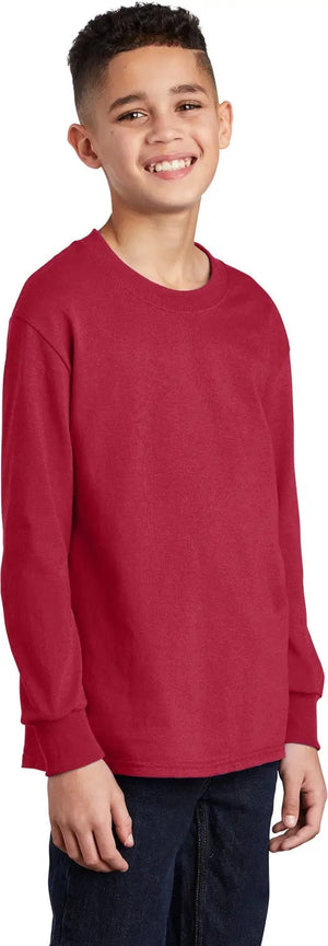 Port & Company PC54YLS Port & Co Youth Long Sleeve Core Cotton Tee - Red
