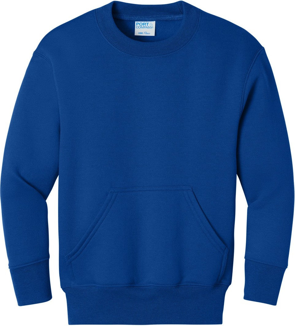 Port & Company PC78YPKT Port & Co Youth Core Fleece Crewneck Pocket Sweatshirt - True Royal