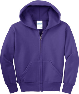 Port & Company PC90YZH Port & Co Youth Core Fleece Full-Zip Hooded Sweatshirt - Purple