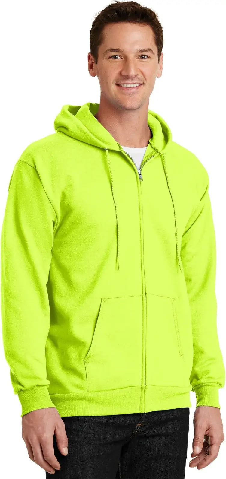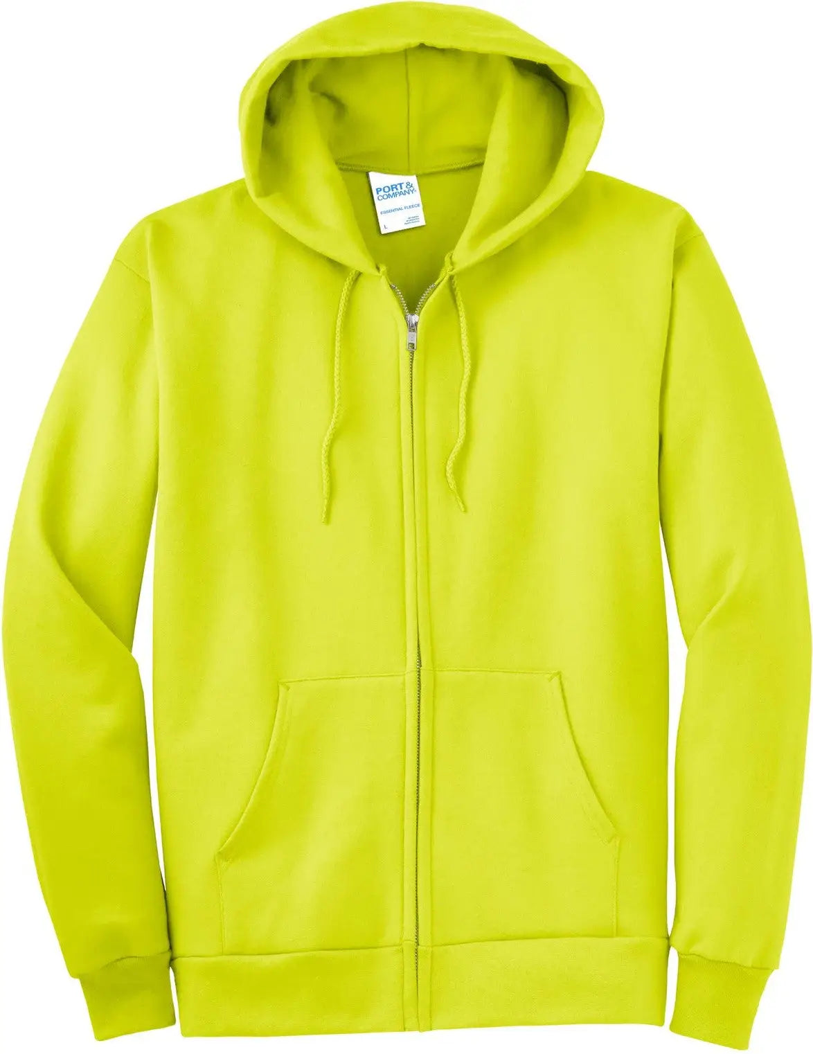 Port & Company PC90ZH Port & Co Essential Fleece Full-Zip Hooded Sweatshirt - Safety Green