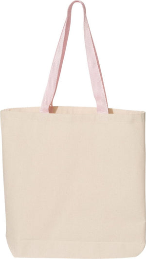 Q-Tees Q4400 11L Canvas Tote with Contrast-Color Handles - Natural Light Pink