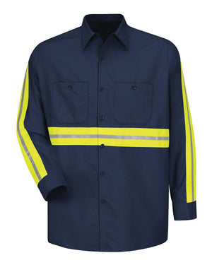 Red Kap SP14E Industrial Enhanced-Visibility Long Sleeve Work Shirt - Navy