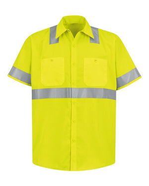 Red Kap SS24HV High Visibility Safety Short Sleeve Work Shirt - Hv-Fluorescent Yellow Green
