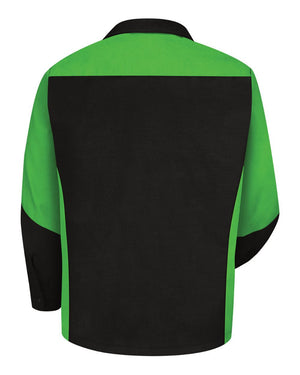 Red Kap SY10T Long Sleeve Automotive Crew Shirt - Tall Sizes - Black Lime