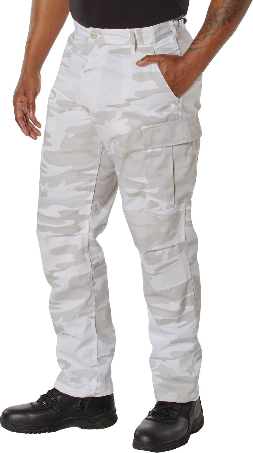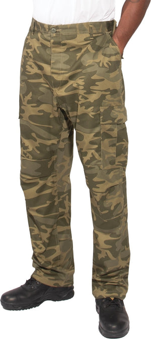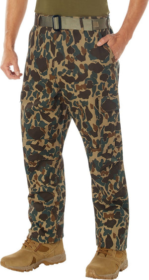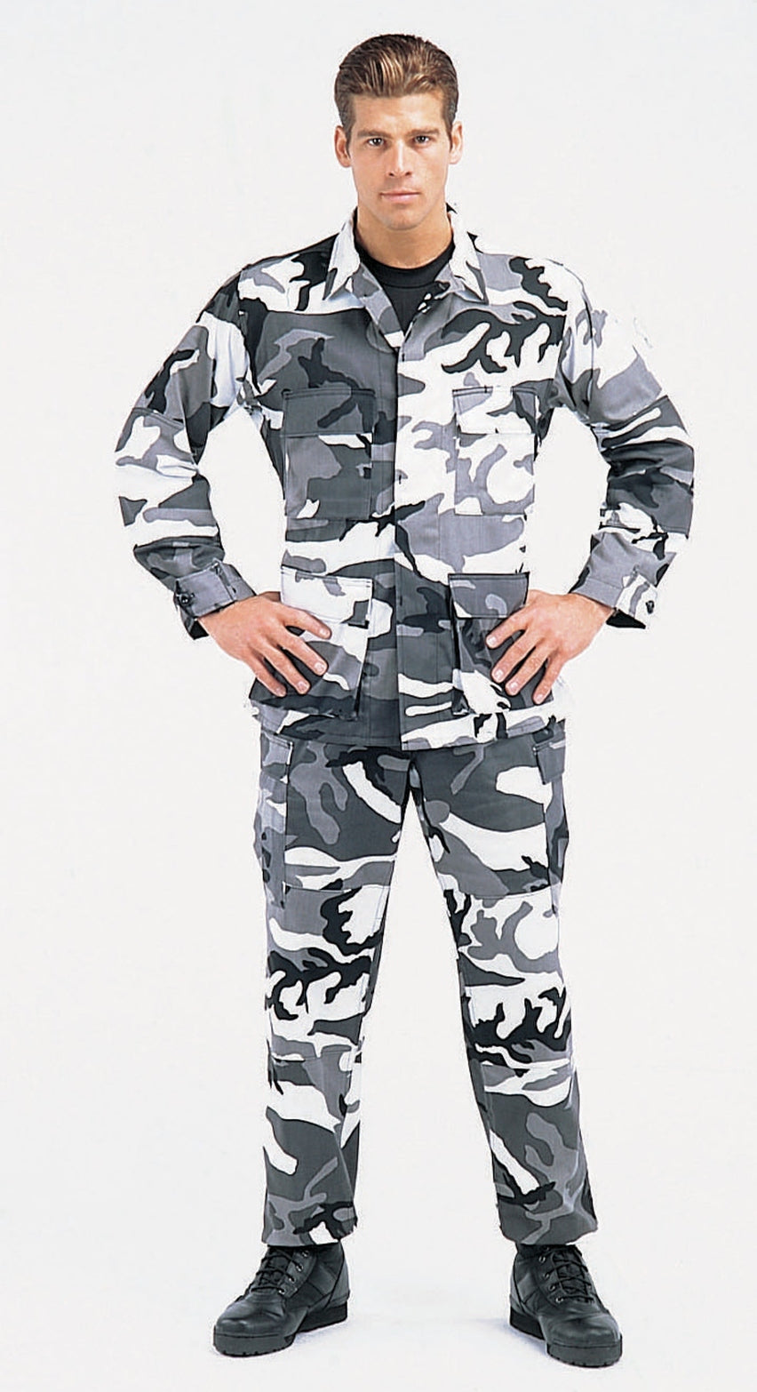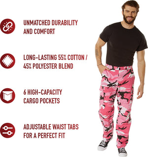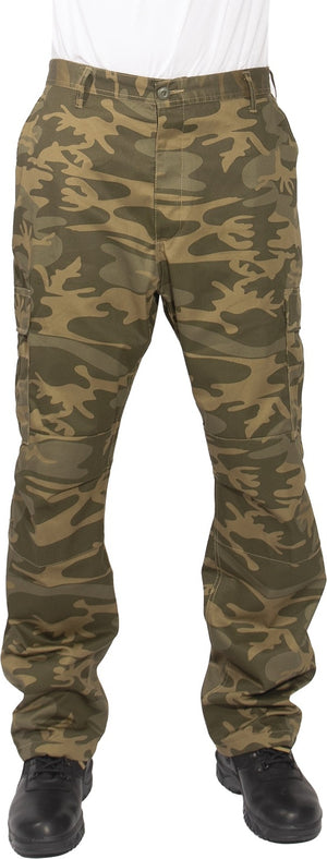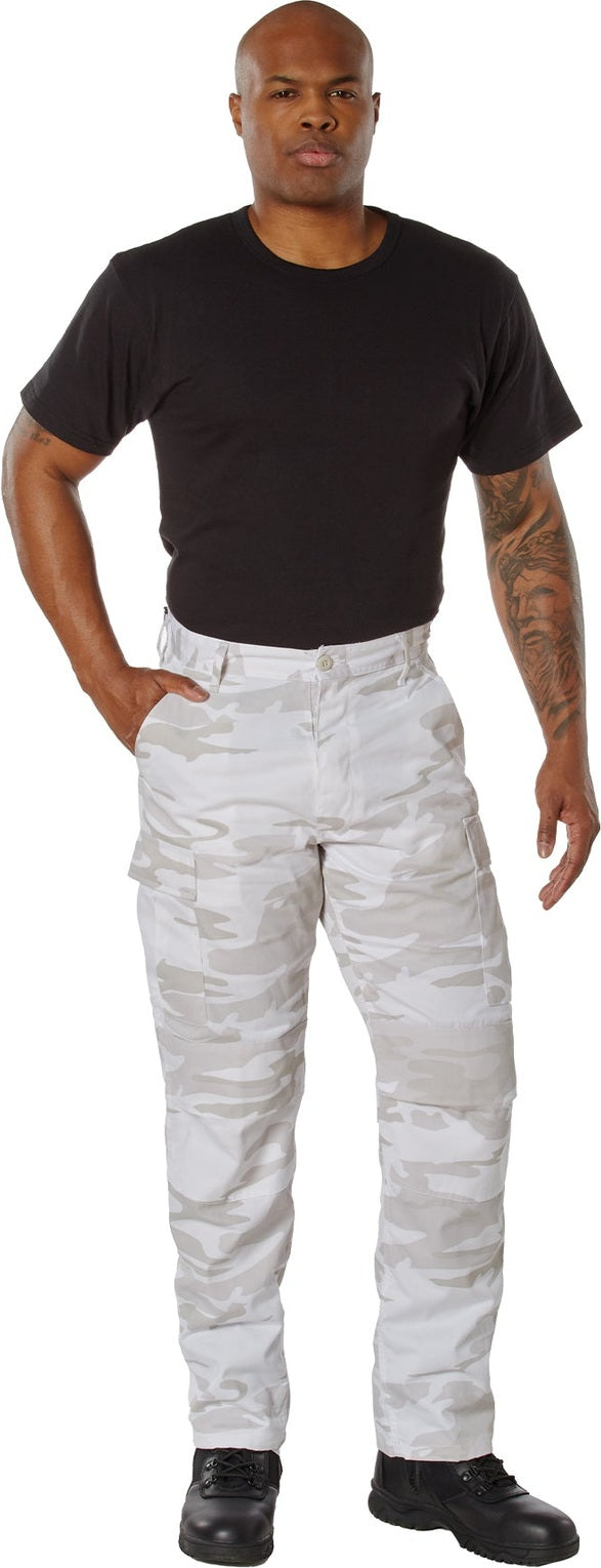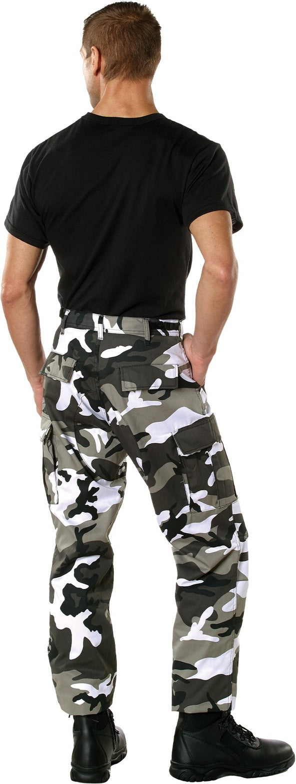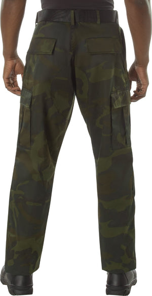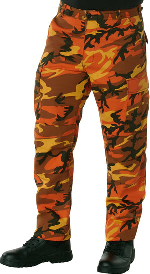 Experience over 4 decades of trusted design with our Color Camo Tactical BDU Pants. Constructed from a robust cotton / polyester fabric blend, these military cargo pants are built for unparalleled performance and comfort. Providing flexibility, strength, and plenty of pockets, these BDUs are not afraid to get down and dirty, standing up to tough challenges during field missions, tactical operations, law enforcement duties, and outdoor adventures. Tried-and-True Reliability: These tactical military uniform pants are reinforced in the seat and knees for maximum durability that endures wear and tear while supporting a full range of motion. The wear-resistant double-stitched seams provide extra strength and years of reliable use as you train, ruck, sprint, hike, and climb. High-Capacity Cargo Pockets: The camouflage EDC cargo pants provide functional utility through a spacious 6 pocket design that consists of 2 large button-down cargo pockets, 2 front slash pockets, and 2 button-down back pockets for storing tactical gear or everyday essentials like your phone, wallet, keys, or multi-tool. Utility at the Forefront: These tactical camo hiking pants feature adjustable waist tabs that enable the perfect fit. In addition, the straight leg opening fits over boots comfortably while the drawstring ankle ties allow you to easily adjust the fit. These military BDU cargo pants utilize a button closure and fly. Action Ready: Initially designed for military personnel and tactical professionals, these adaptable and reliable tactical cargo pants are great for backpacking, camping, hiking, hunting, fishing, working, public safety, skateboarding, everyday wear, and more.