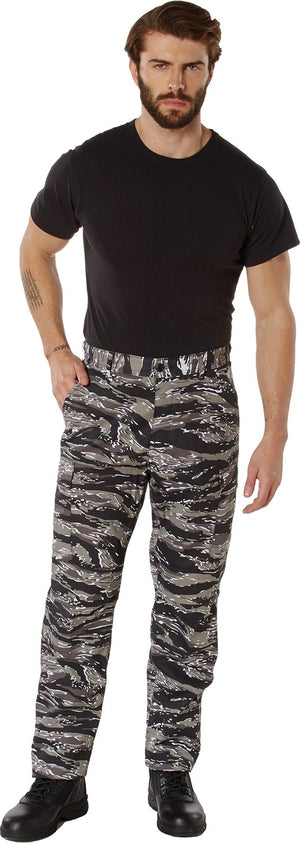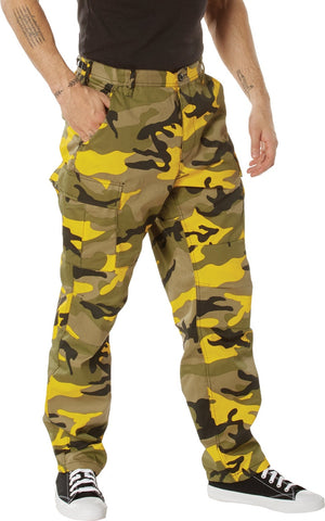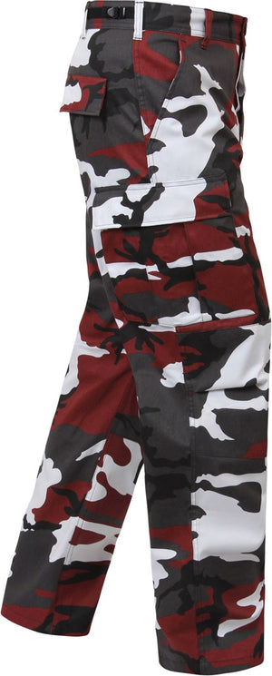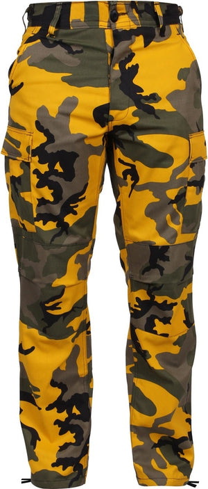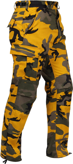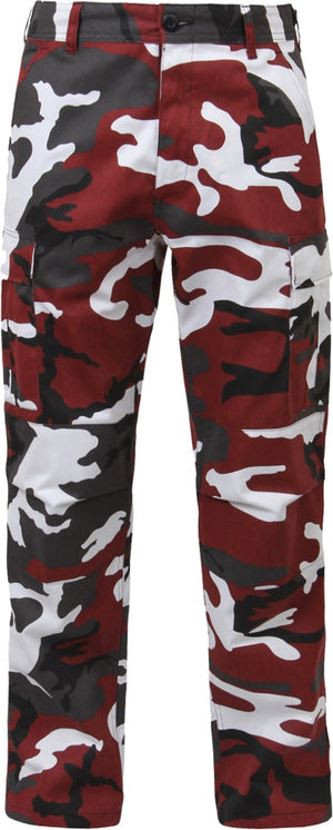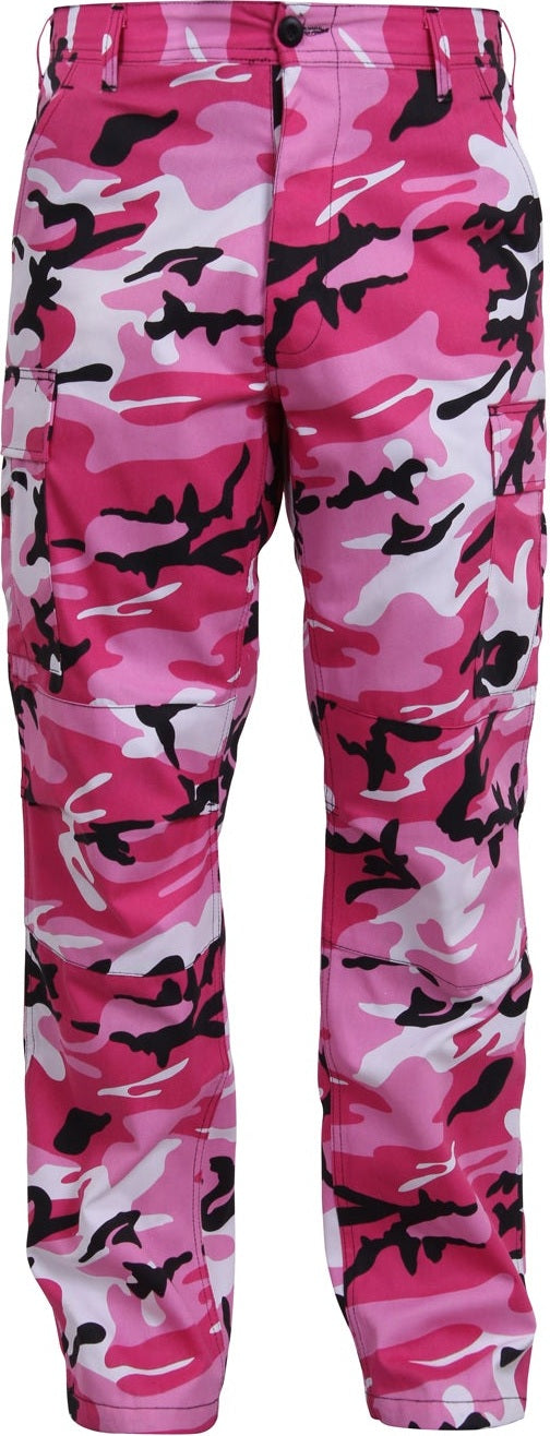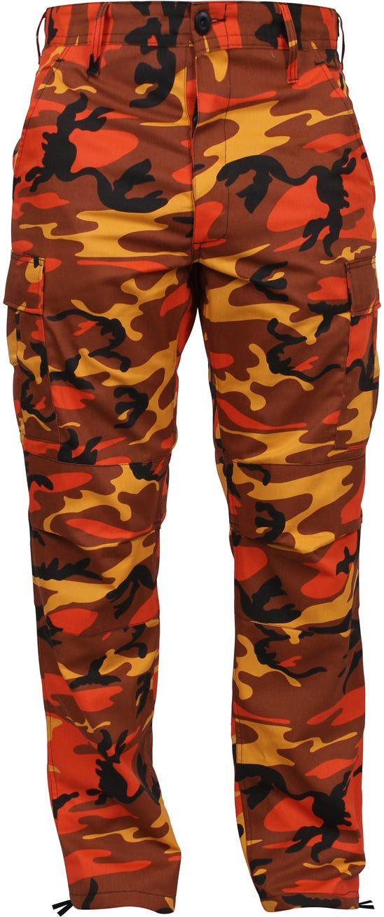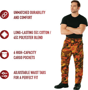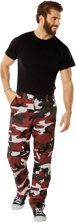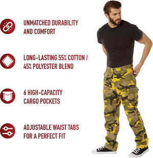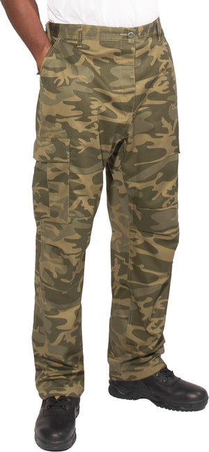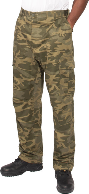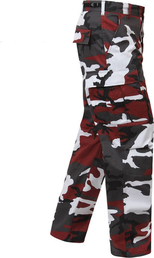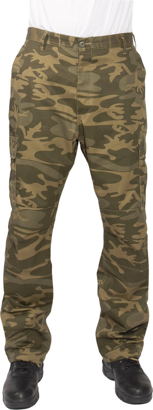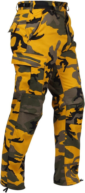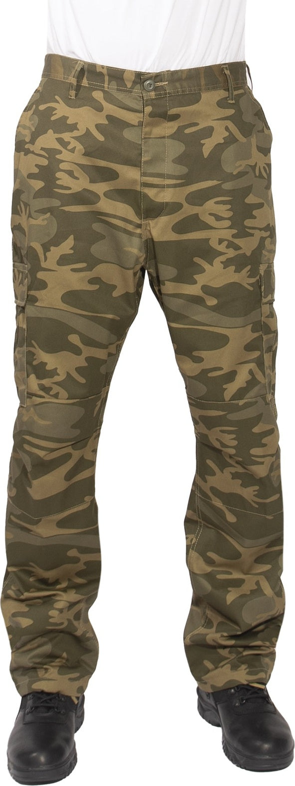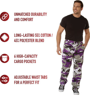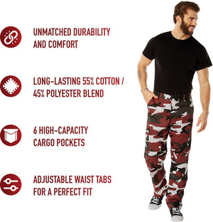Experience over 4 decades of trusted design with our Color Camo Tactical BDU Pants. Constructed from a robust cotton / polyester fabric blend, these military cargo pants are built for unparalleled performance and comfort. Providing flexibility, strength, and plenty of pockets, these BDUs are not afraid to get down and dirty, standing up to tough challenges during field missions, tactical operations, law enforcement duties, and outdoor adventures. Tried-and-True Reliability: These tactical military uniform pants are reinforced in the seat and knees for maximum durability that endures wear and tear while supporting a full range of motion. The wear-resistant double-stitched seams provide extra strength and years of reliable use as you train, ruck, sprint, hike, and climb. High-Capacity Cargo Pockets: The camouflage EDC cargo pants provide functional utility through a spacious 6 pocket design that consists of 2 large button-down cargo pockets, 2 front slash pockets, and 2 button-down back pockets for storing tactical gear or everyday essentials like your phone, wallet, keys, or multi-tool. Utility at the Forefront: These tactical camo hiking pants feature adjustable waist tabs that enable the perfect fit. In addition, the straight leg opening fits over boots comfortably while the drawstring ankle ties allow you to easily adjust the fit. These military BDU cargo pants utilize a button closure and fly. Action Ready: Initially designed for military personnel and tactical professionals, these adaptable and reliable tactical cargo pants are great for backpacking, camping, hiking, hunting, fishing, working, public safety, skateboarding, everyday wear, and more.