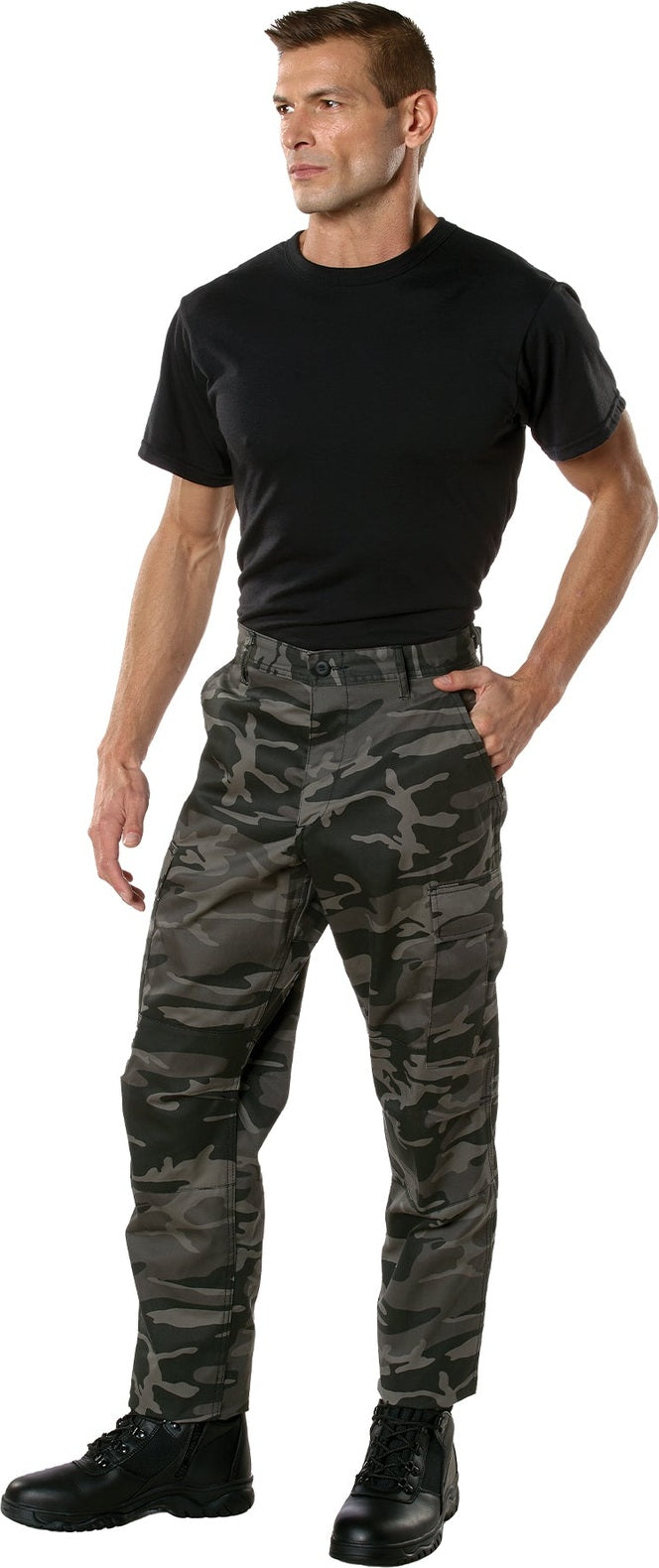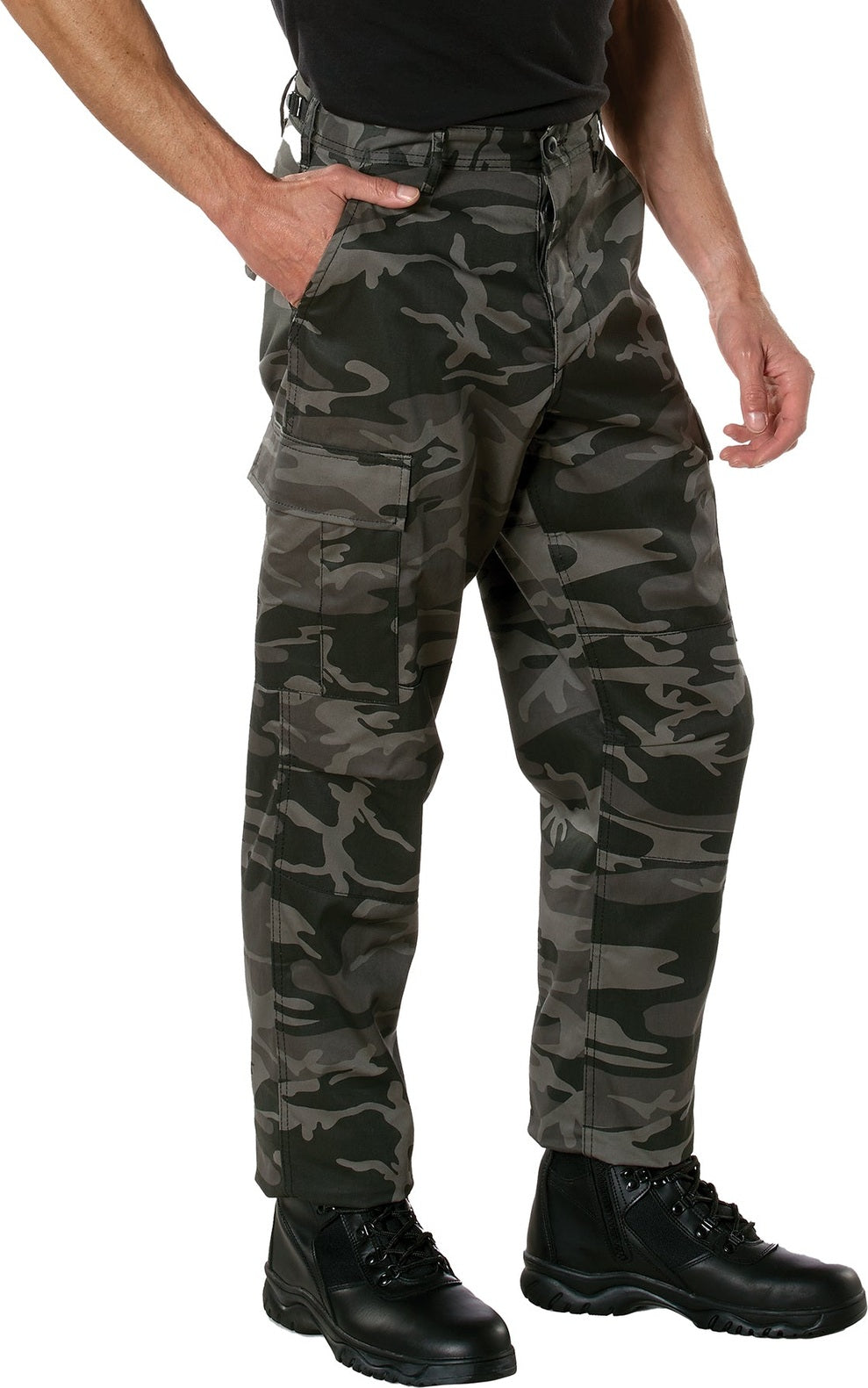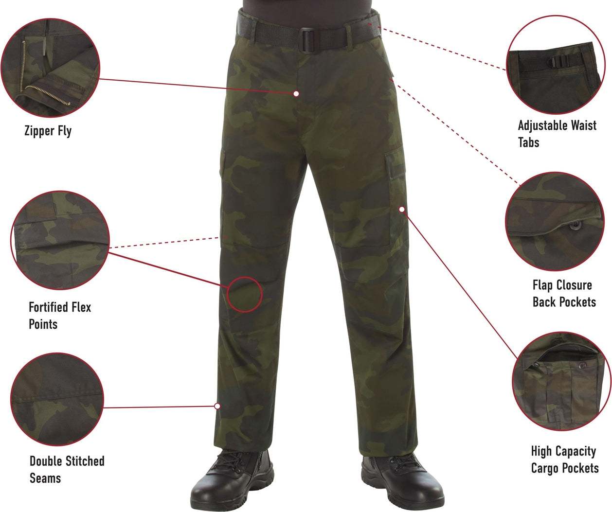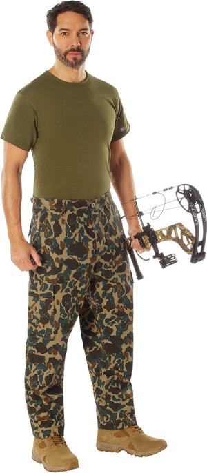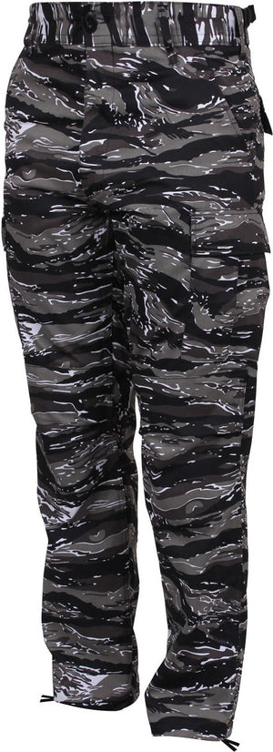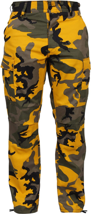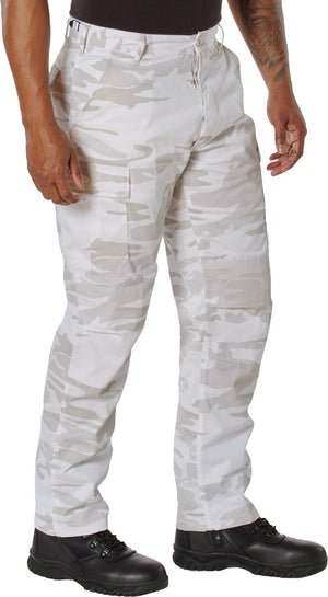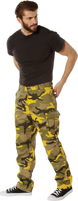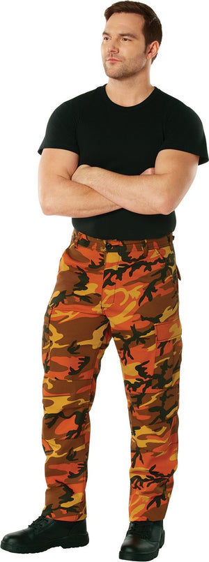 Experience over 4 decades of trusted design with our Color Camo Tactical BDU Pants. Constructed from a robust cotton / polyester fabric blend, these military cargo pants are built for unparalleled performance and comfort. Providing flexibility, strength, and plenty of pockets, these BDUs are not afraid to get down and dirty, standing up to tough challenges during field missions, tactical operations, law enforcement duties, and outdoor adventures. Tried-and-True Reliability: These tactical military uniform pants are reinforced in the seat and knees for maximum durability that endures wear and tear while supporting a full range of motion. The wear-resistant double-stitched seams provide extra strength and years of reliable use as you train, ruck, sprint, hike, and climb. High-Capacity Cargo Pockets: The camouflage EDC cargo pants provide functional utility through a spacious 6 pocket design that consists of 2 large button-down cargo pockets, 2 front slash pockets, and 2 button-down back pockets for storing tactical gear or everyday essentials like your phone, wallet, keys, or multi-tool. Utility at the Forefront: These tactical camo hiking pants feature adjustable waist tabs that enable the perfect fit. In addition, the straight leg opening fits over boots comfortably while the drawstring ankle ties allow you to easily adjust the fit. These military BDU cargo pants utilize a button closure and fly. Action Ready: Initially designed for military personnel and tactical professionals, these adaptable and reliable tactical cargo pants are great for backpacking, camping, hiking, hunting, fishing, working, public safety, skateboarding, everyday wear, and more.