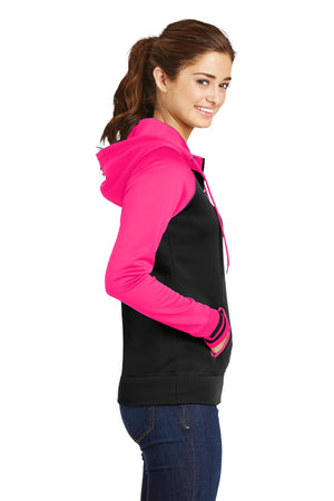 Sport-Tek LST236 Women's Sport-Wick Varsity Fleece Full-Zip Hooded Jacket - Black Neon Pink