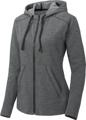 Sport-Tek LST293 Women's PosiCharge Tri-Blend Wicking Fleece Full-Zip Hooded Jacket - Dark Gray Heather