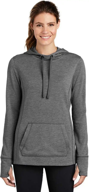 Sport-Tek LST296 Women'S Posicharge Tri-Blend Wicking Fleece Hooded Pullover - Dark Grey Heather