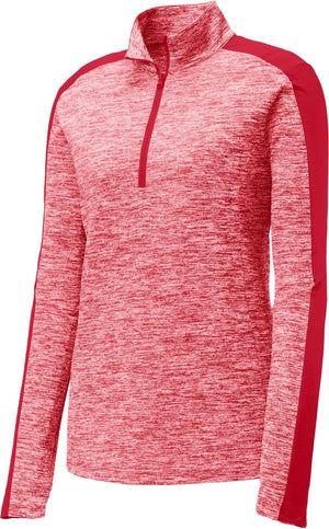 Sport-Tek LST397 Women's PosiCharge Electric Heather Colorblock 1/4-Zip Pullover - Deep Red Electric Deep Red