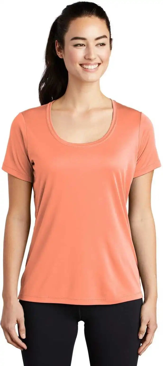 Sport-Tek LST420 Ladies Posi-UV Pro Scoop Neck Tee - Soft Coral
