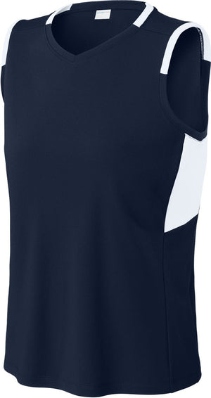 Sport-Tek LST441 Women's Club Sleeveless V-Neck - True Navy White