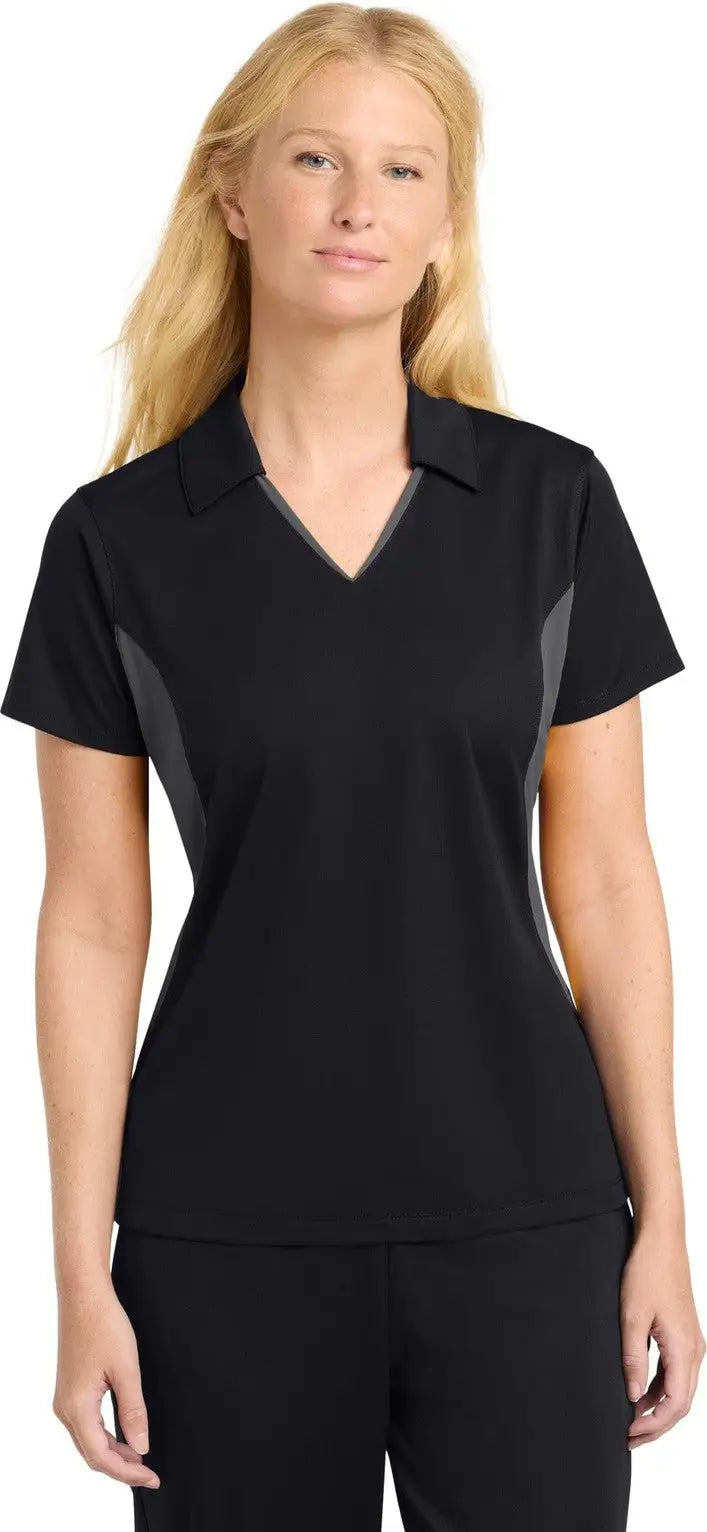 Sport-Tek LST655 Women's Side Blocked Micropique Sport-Wick Polo - Black Iron Gray