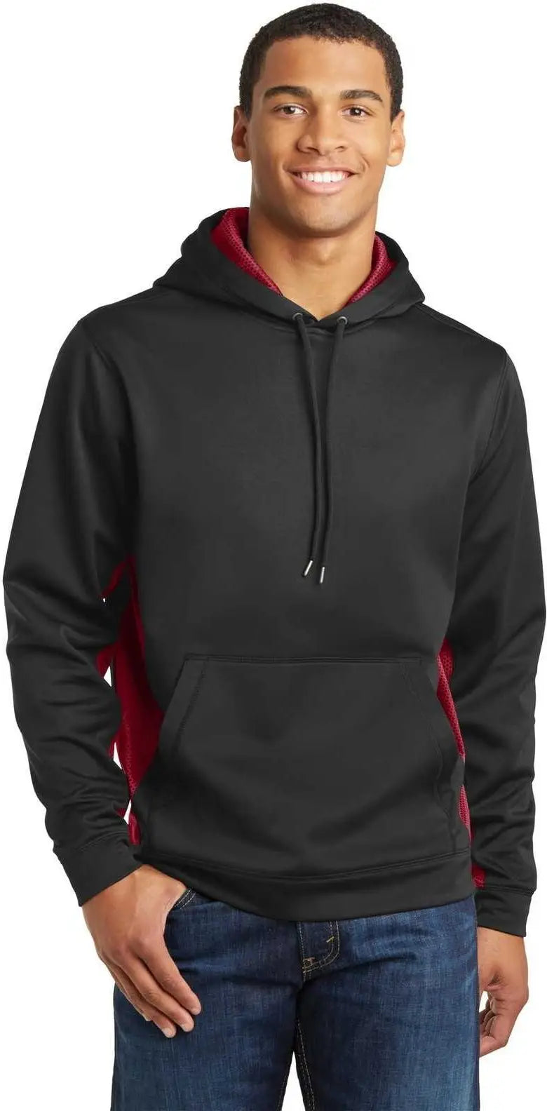 Sport-Tek ST239 Sport-Wick CamoHex Fleece Colorblock Hooded Pullover - Black Deep Red