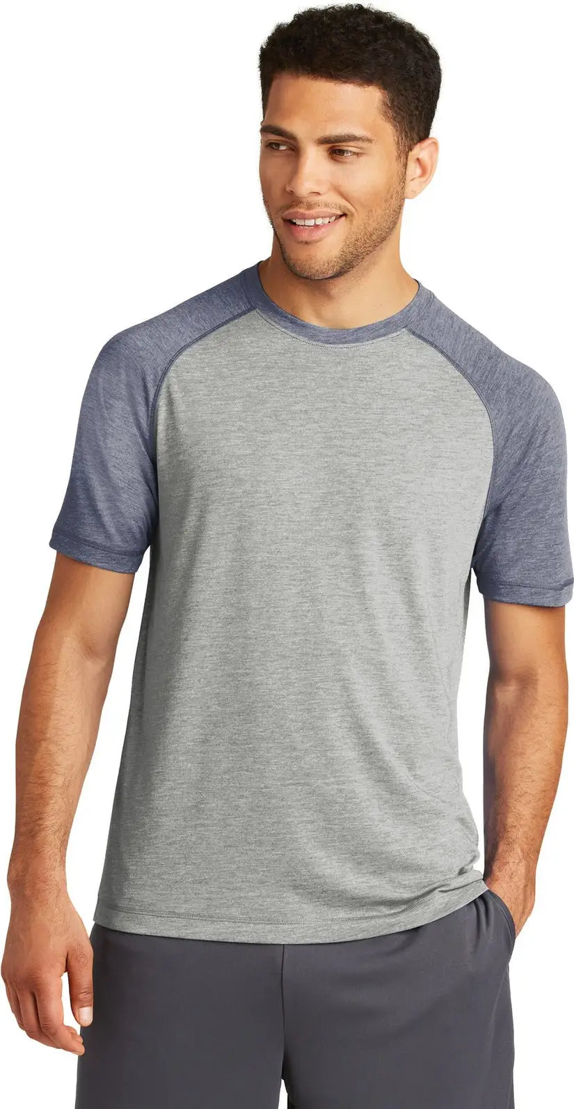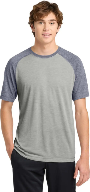Sport-Tek ST400 PosiCharge Tri-Blend Wicking Raglan Tee - True Navy Heather Light Gray Heather