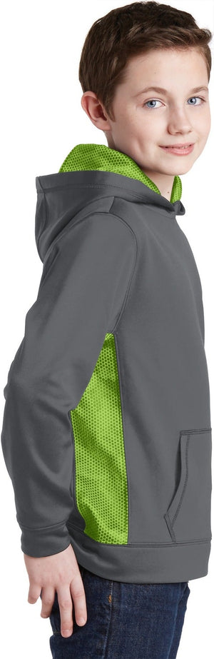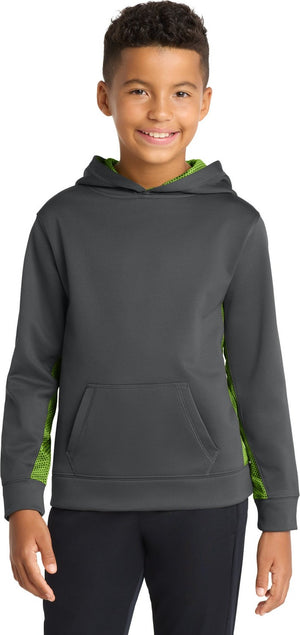Sport-Tek YST239 Youth Sport-Wick CamoHex Fleece Colorblock Hooded Pullover - Dark Smoke Gray Lime Shock