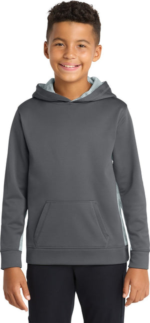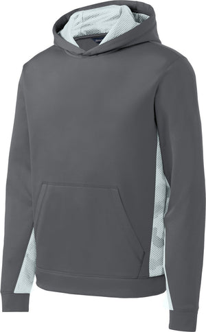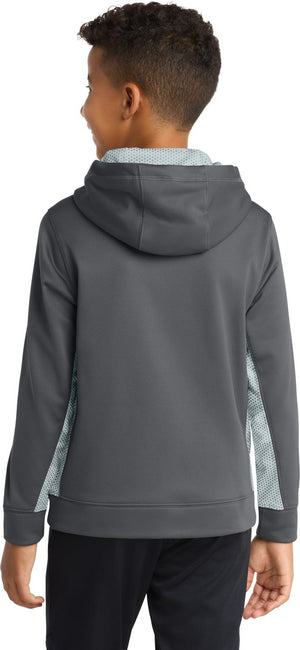 Sport-Tek YST239 Youth Sport-Wick CamoHex Fleece Colorblock Hooded Pullover - Dark Smoke Gray White