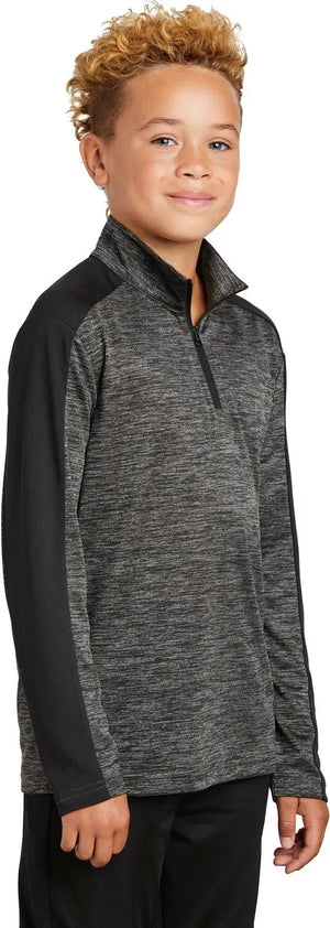 Sport-Tek YST397 Youth PosiCharge Electric Heather Colorblock 1/4-Zip Pullover - Gray-Black Electric Black
