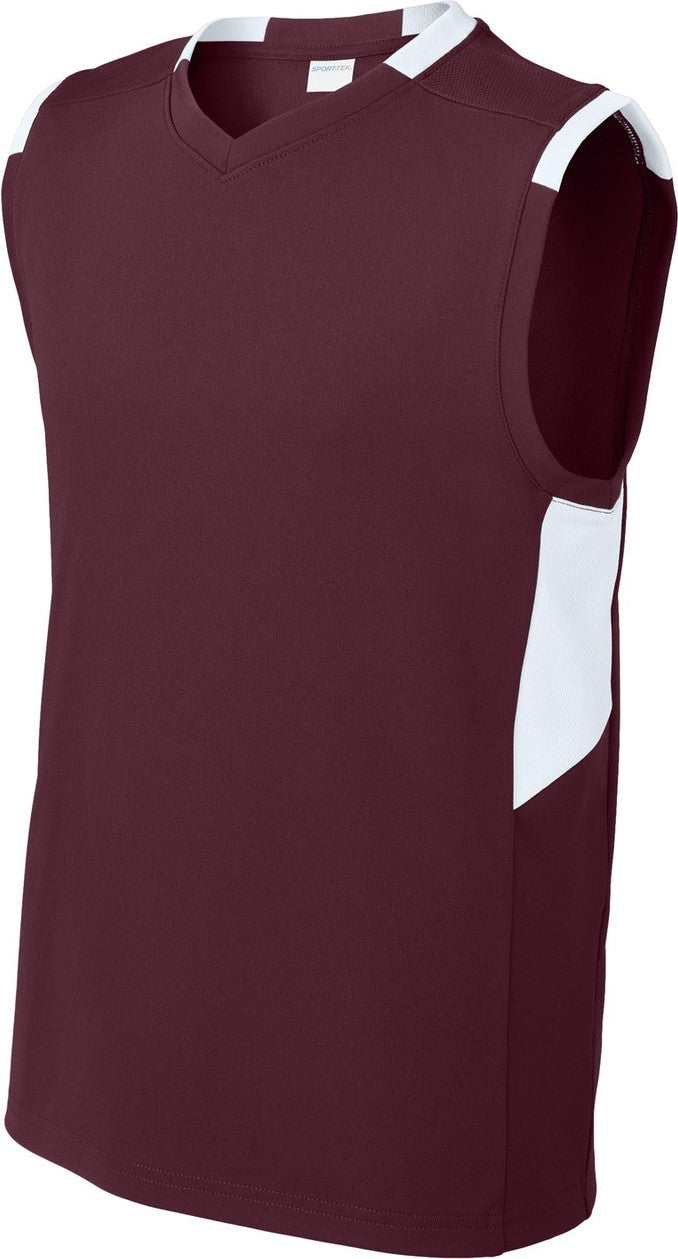 Sport-Tek YST441 Youth Club Sleeveless V-Neck - Maroon White