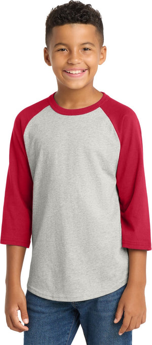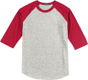 Sport-Tek YT200 Youth Colorblock Raglan Jersey - Heather Gray Red
