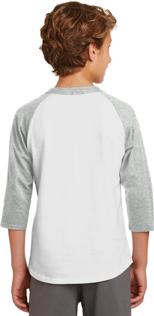 Sport-Tek YT200 Youth Colorblock Raglan Jersey - White Heather Gray