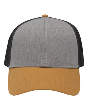 Sportsman SP1450 Traditional Lo-Pro Mesh Back Trucker Fit Cap - Heather Grey Charcoal Vegas Gold