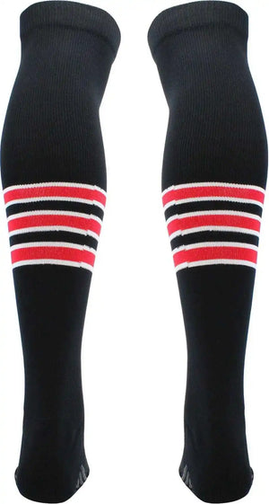 TCK Dugout Striped Over the Knee Baseball Socks - Black White Scarlet