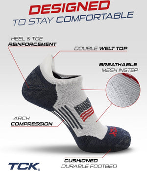 TCK Tour Flag No Show Socks for Men and Women - White Black