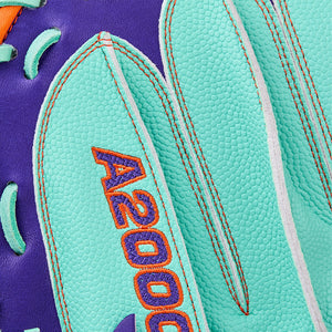Set the perfect target and control the zone. The Winter 2025 Wilson A2000 CM33SS is a 33" catcher's mitt built to frame edges, swallow heaters, and secure dirt-ball blocks. A Purple Pro Stock Leather palm forms a durable, comfortable pocket, while Seafoam SuperSkin on the back keeps the mitt lightweight and quick. The Half-Moon Web presents a clean look for pitchers and helps lock down high-velo strikes. Inside, Dri-Lex and Flat Finger Binding add comfort for all nine. Finished with Woven Bold Logos for a fresh Winter Collection look.